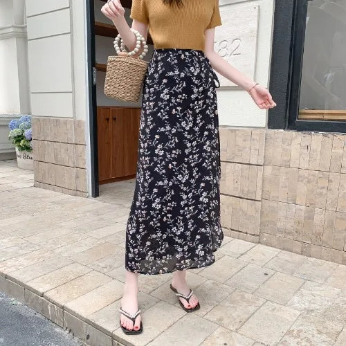 n Sle Midi Skirt Women's Vaion Ethnic Red Floral Print Chiffon Wrap around f Length Skirt Bodycon Sle