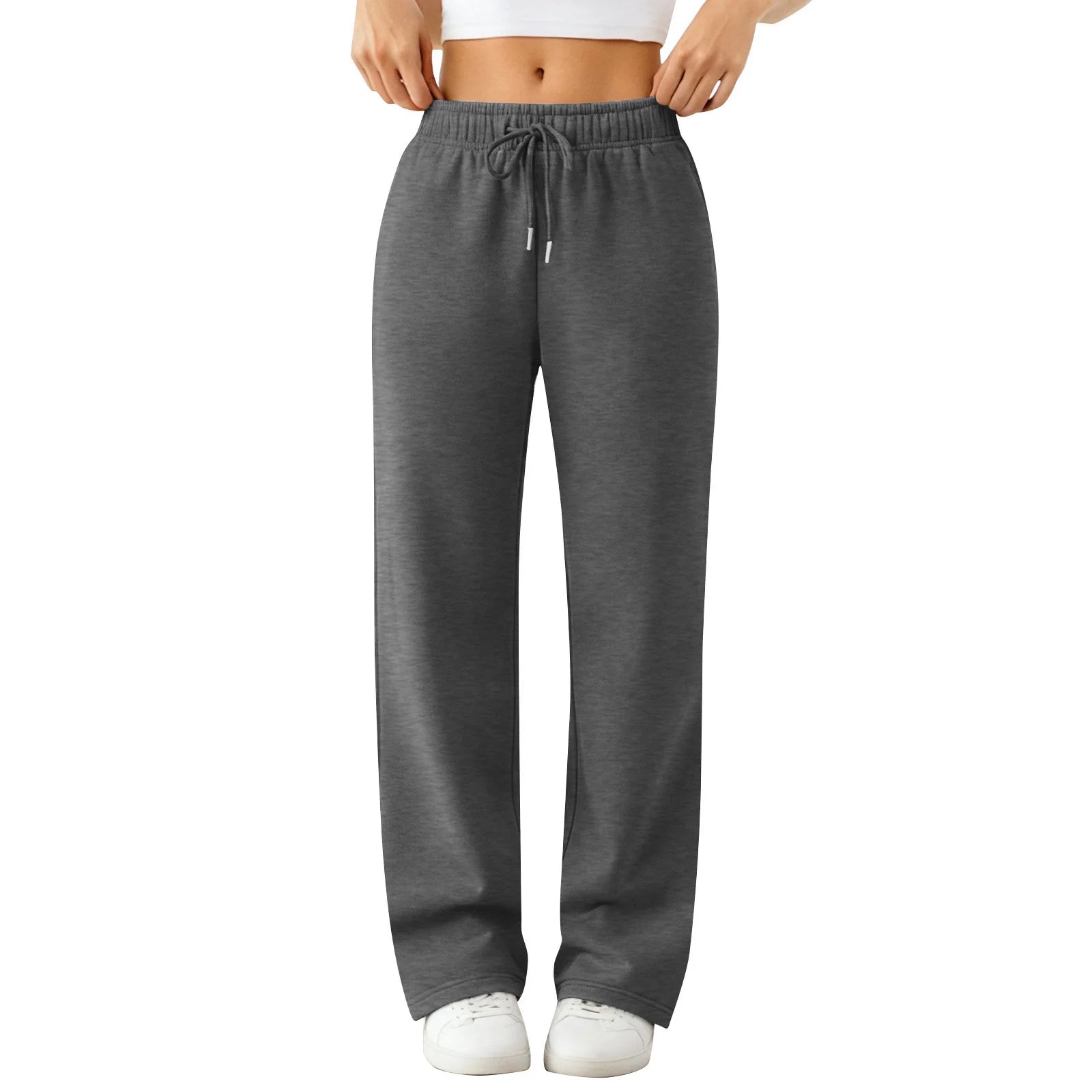 Women's Warm Wide-Leg Casual Sports Pants Wool-Lined Drawstring High-Waisted Straight-Leg Pants Gym Commute Home Jogging Pants